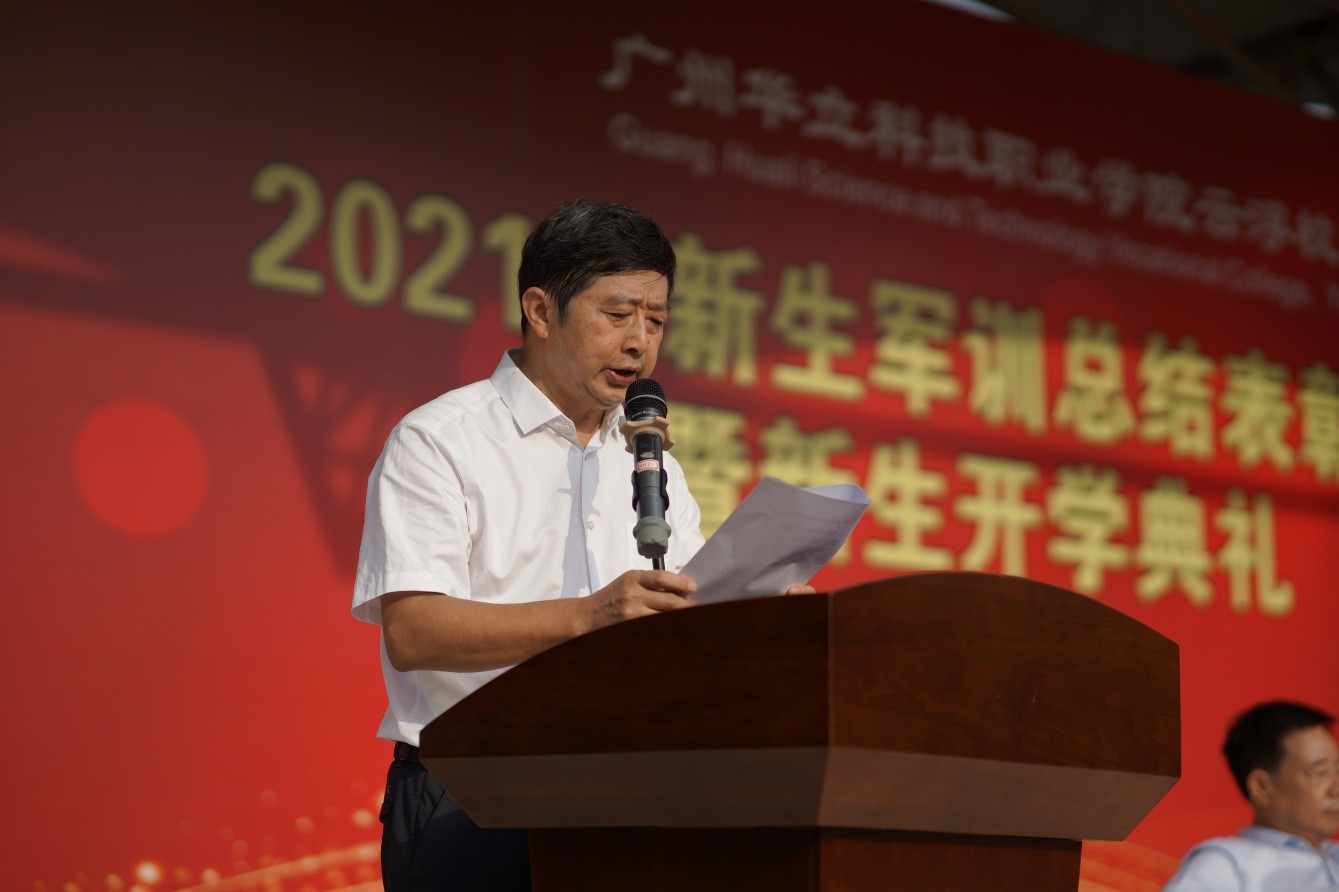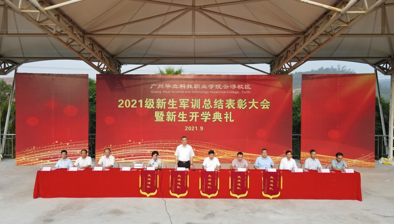 金秋九月,是收获的季节,也是迎新的季节!清晨,当阳光透过云层,洒在校园里,2021级新生汇聚一起,怀着兴奋、激动的心情迎接他们大学生涯的第一个重要时刻——新生开学典礼暨军训表彰大会。9月18日上午,广州华立科技职业学院2021级新生开学典礼暨军训总结表彰大会在广州校区和云浮校区同时举行。学校校长刘庄、执行校长马龙海,党委书记林伟健,副校长马俊、易健民、高尧来,校长助理王洪艳,郭仲先,全体教官,各职能部门和学院负责人出席的典礼。2021级全体新生参加典礼。广州校区典礼由党委副书记、副校长高尧来主持,云浮校区典礼由校长助理王洪艳主持。