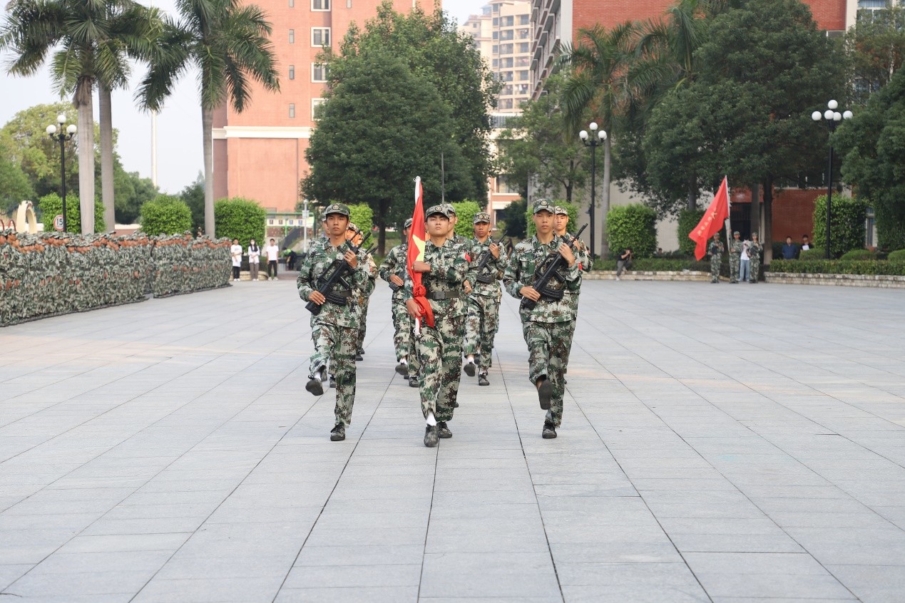 广州典礼上,党委书记林伟健作2021级新生军训总结讲话。表扬同学们在军训中敢于吃苦、迎难而上,严守纪律,尊重教官,服从命令,听从指挥,展示出了奋发向上的精神风貌和朝气蓬勃的青春风采,希望大家继续以饱满的热情、昂扬的斗志、顽强的毅力投入到大学的学习中。同时提出要同学们多读党史、新中国史、改革开放史,从历史中汲取智慧和力量,以“学党史”为基本点,以“强信念”为总开关,以“跟党走”为总目标的要求,积极主动走在前,勇担强国使命,以实际行动和优异成绩向庆祝建党100周年献礼。