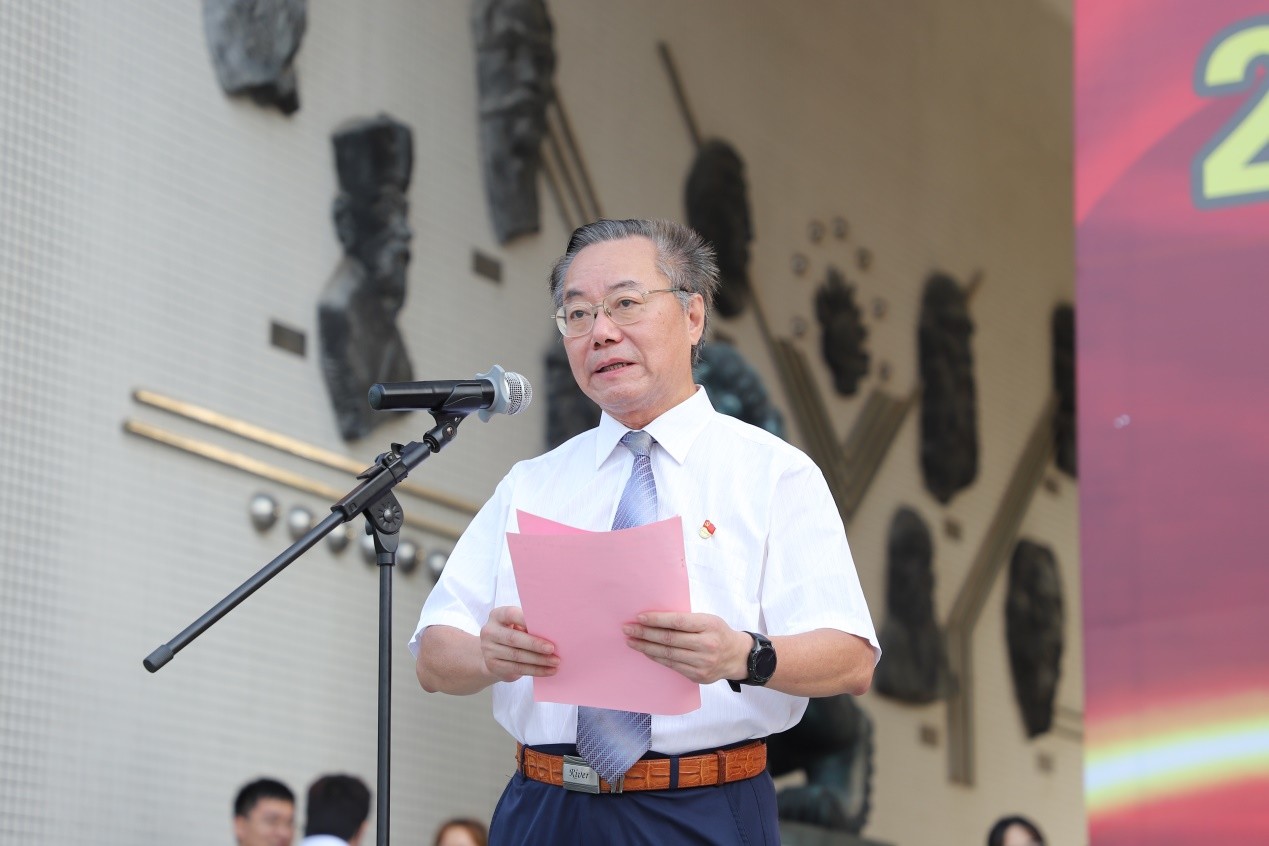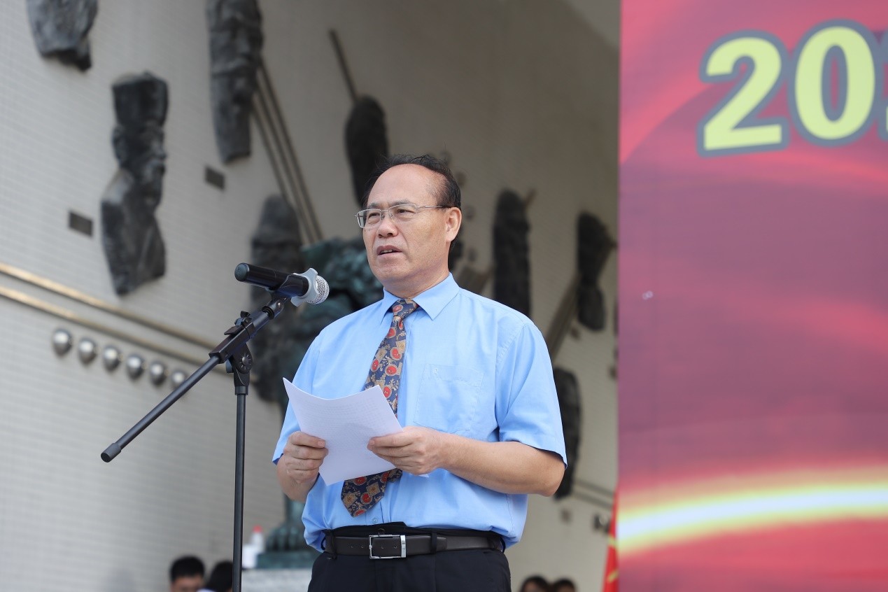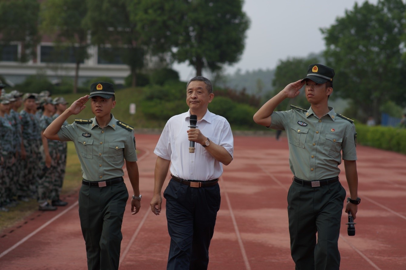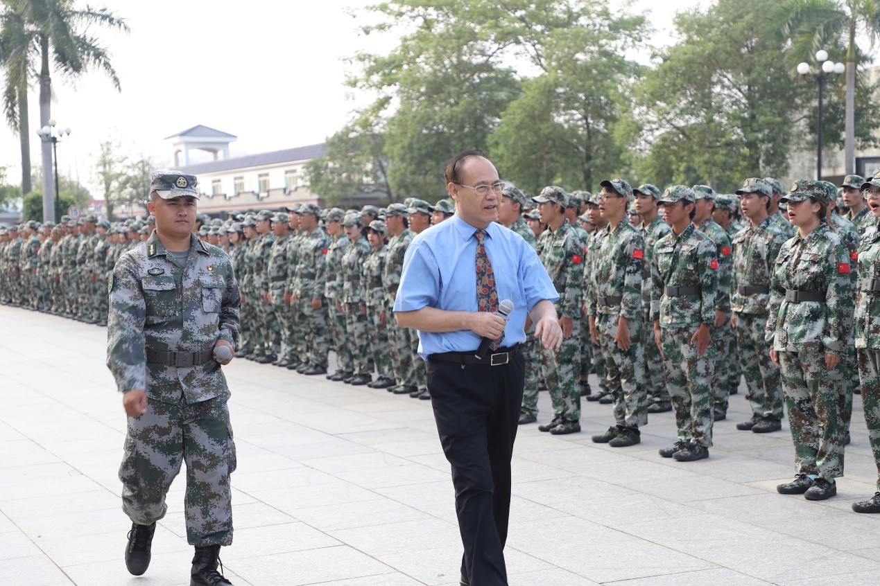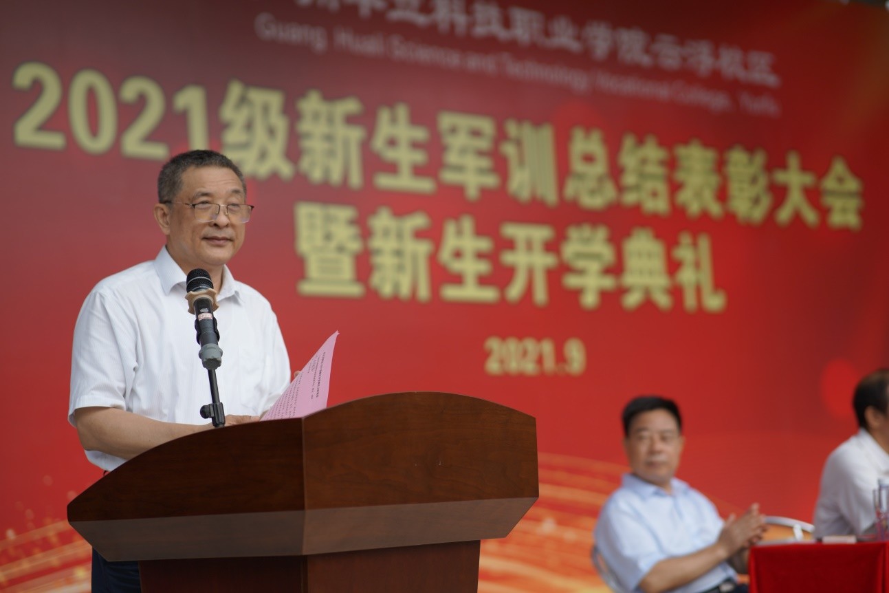 云浮校区典礼上,副校长易健民作2021级新生军训总结讲话。易健民副校长勉励大家在今后的大学生活中,要大力弘扬爱国主义精神,要把拳拳报国情转化为坚定的报国志,转化为踏实的报国行,成为道德高尚勤奋努力的大学生。
