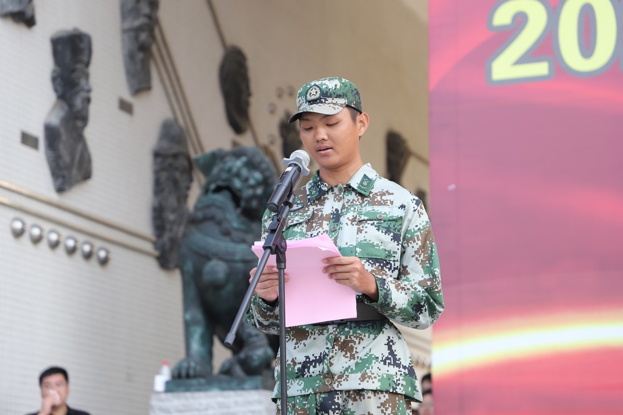 广州增城区武装部邓伟健主任代表承训部队讲话,表示同学们通过10多天的军训对军队历史和无私奉献的精神有一定的了解体会,希望大家继续秉承艰苦奋斗,顽强拼搏的精神认真学习,真正成为一名有理想、有道德、有文化、有纪律的高素质复合型人才。